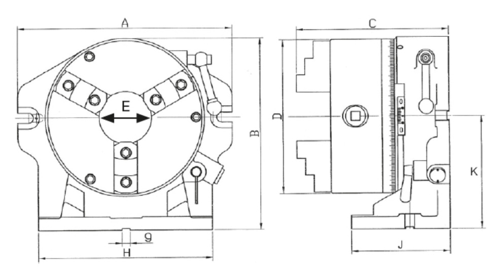 Dělicí hlava s klíčem, vodorovná/svislá, se soustružnickým sklíčidlem Ø 165