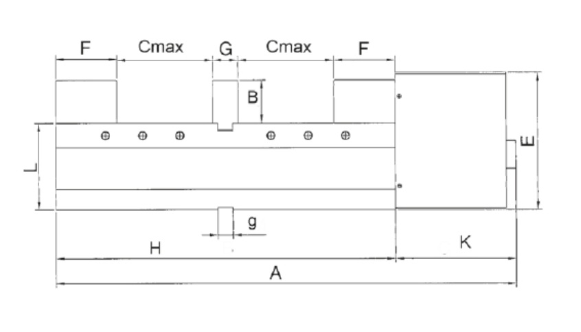 | A | B | Cmax | E | F | g | G | H | K | kg | L | Max.up.síla daN | Takt s | Typ | W |