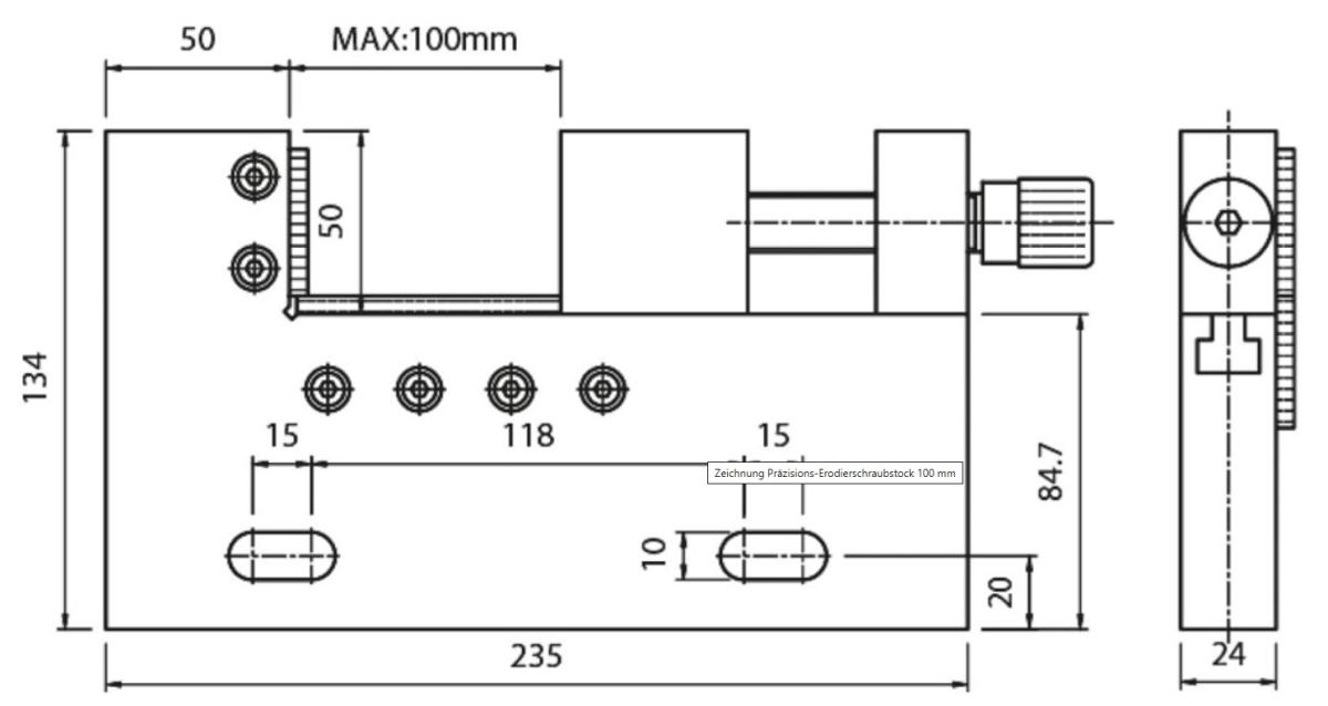 vysoce přesný svěrák, vhodný pro použití v erozních strojích; vysoká upínací síla zaručuje stabilní nastavení polohy obrobku i za vysokého tlaku chladicí kapaliny