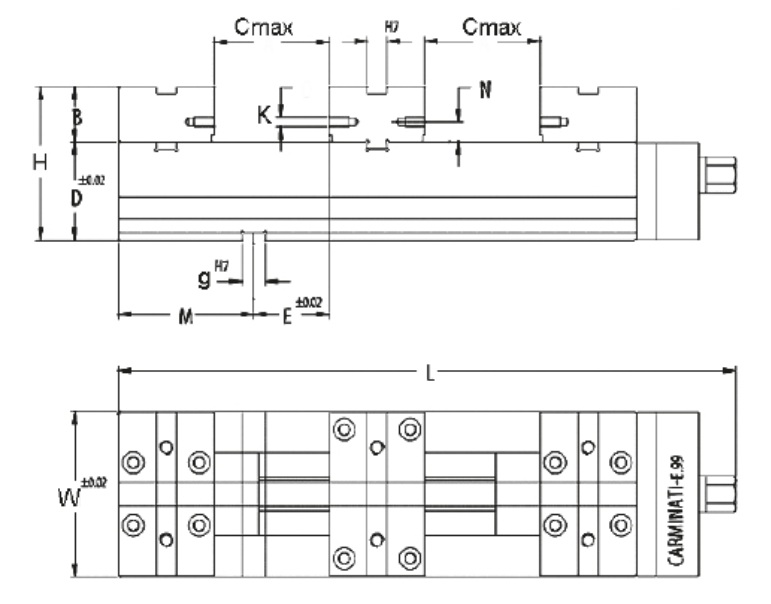 | B | Cmax | D | E | F | g | H | K | kg | L | M | material | Material | Max.up.síla daN | N | Typ | W |