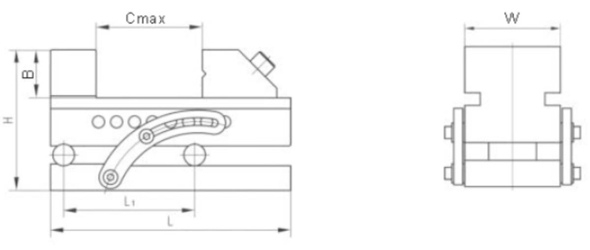 | B | Cmax | H | kg | Kolmost | L | L1 | Souběžnost | Tvrdé čelisti HRC | Typ | W |