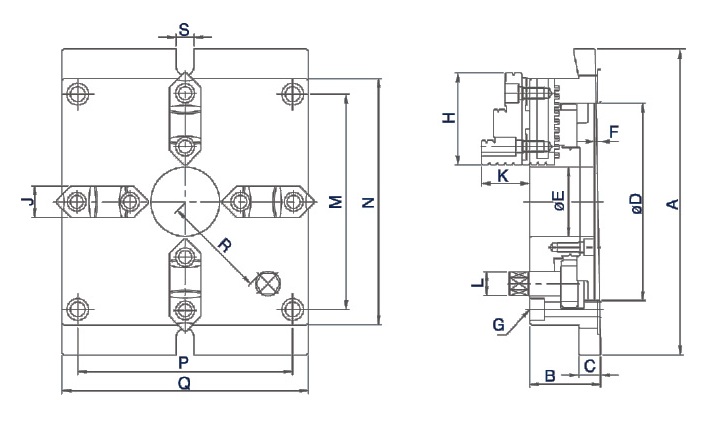 Stacionární čtyřčelisťové soustružnické sklíčidlo Ø165
