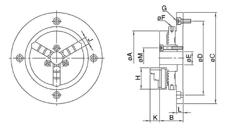 Stacionární tříčelisťové soustružnické sklíčidlo, extra ploché Ø 170