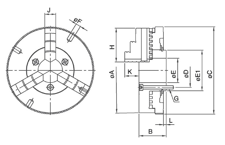 Tříčelisťové ocelové sklíčidlo extra ploché Ø 125 pro měřící přístroje, otočné
